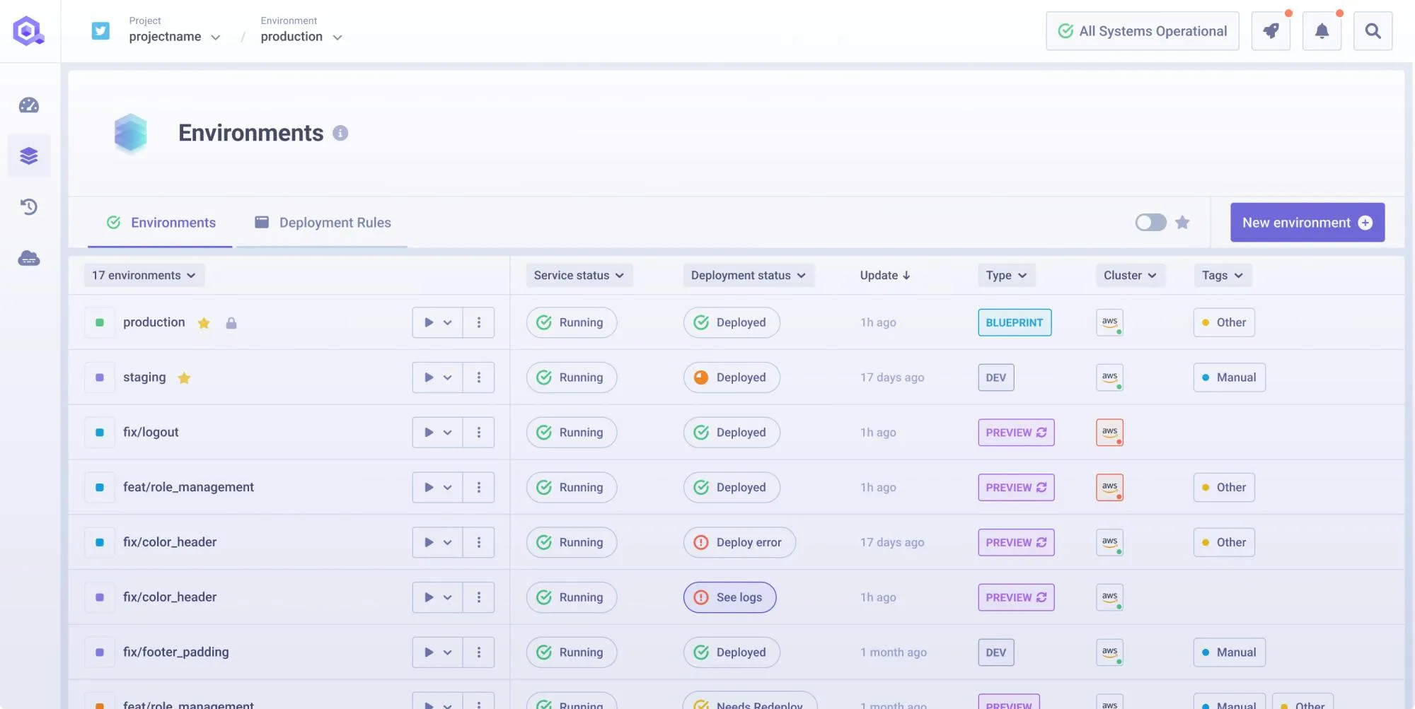 - Zero-Drift Promotion: The promotion carries the full environment definition: every service, every variable, every dependency, so that the team does not need to manually recreate the environment on the target cluster. This removes the opportunity for drift to occur during manual promotion, where a variable gets missed or a resource limit gets changed between stages.