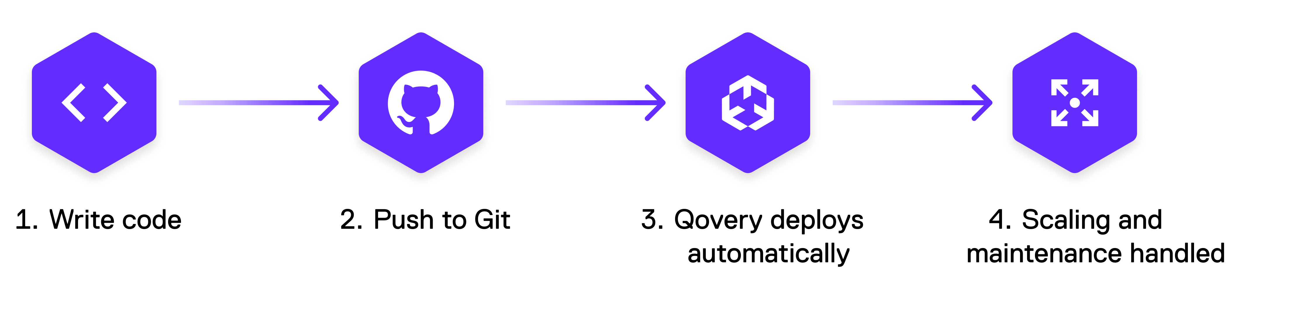 Qovery works by providing a user-friendly interface that integrates with your existing code repositories. Once you connect your repository, Qovery automatically builds and deploys your application. It manages the underlying infrastructure, scaling, and monitoring, allowing you to concentrate on development.