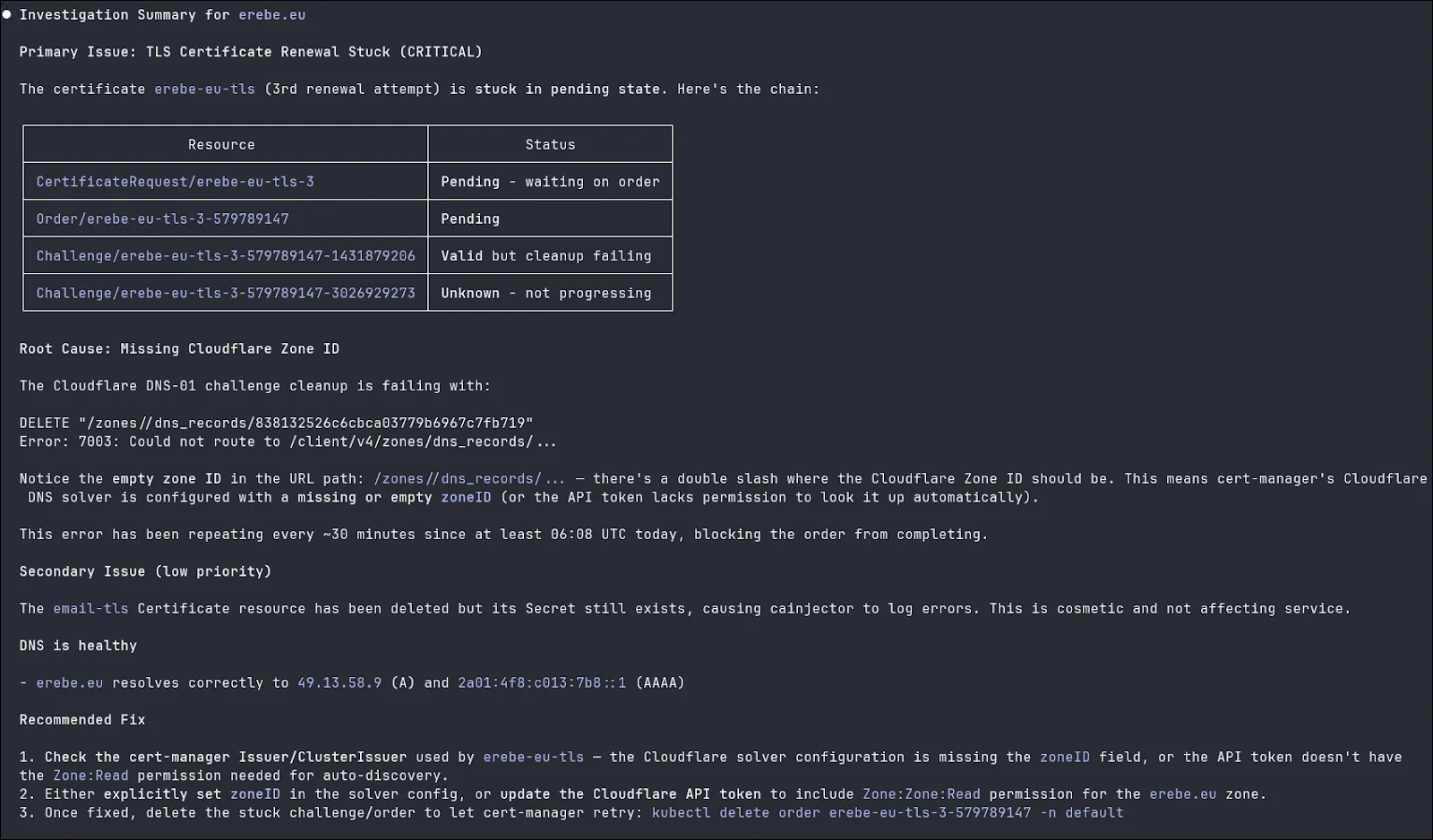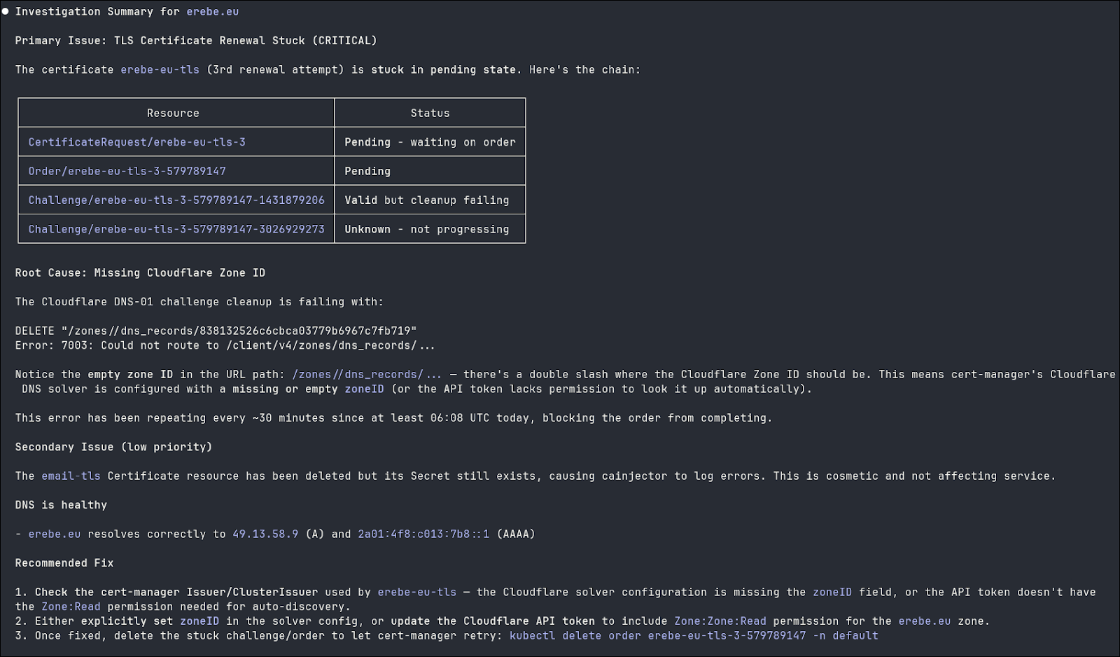 Every engineering leader knows the cost of the 2 AM page. It’s not just the downtime; it’s the cognitive load placed on a sleep-deprived engineer trying to navigate a fragmented microservices architecture. In modern environments, a simple "certificate expired" alert involves a labyrinth of Kubernetes objects, Cloudflare DNS records, and challenges.