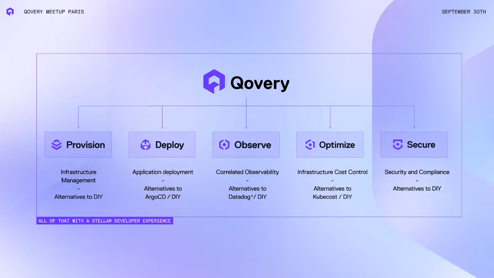 Our new brand is about reinforcing what Qovery does best: making DevOps so simple that developers can focus on building great products. Qovery abstracts DevOps complexities, enabling teams to work more strategically through a developer-first automation platform.