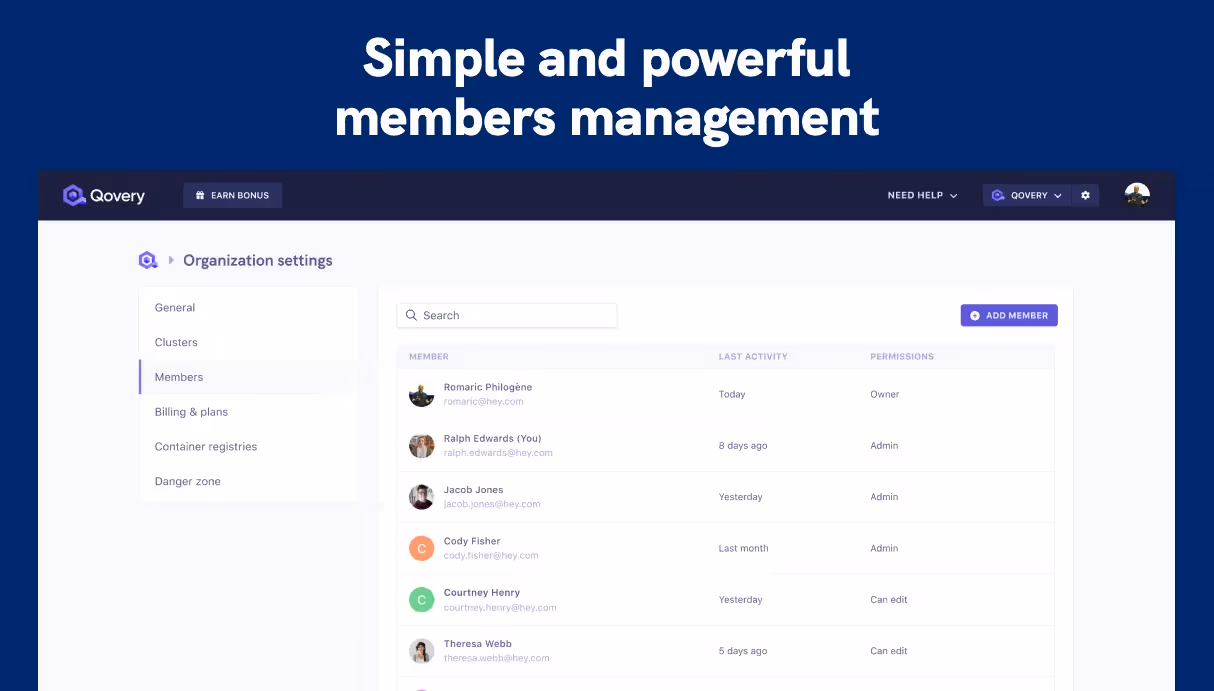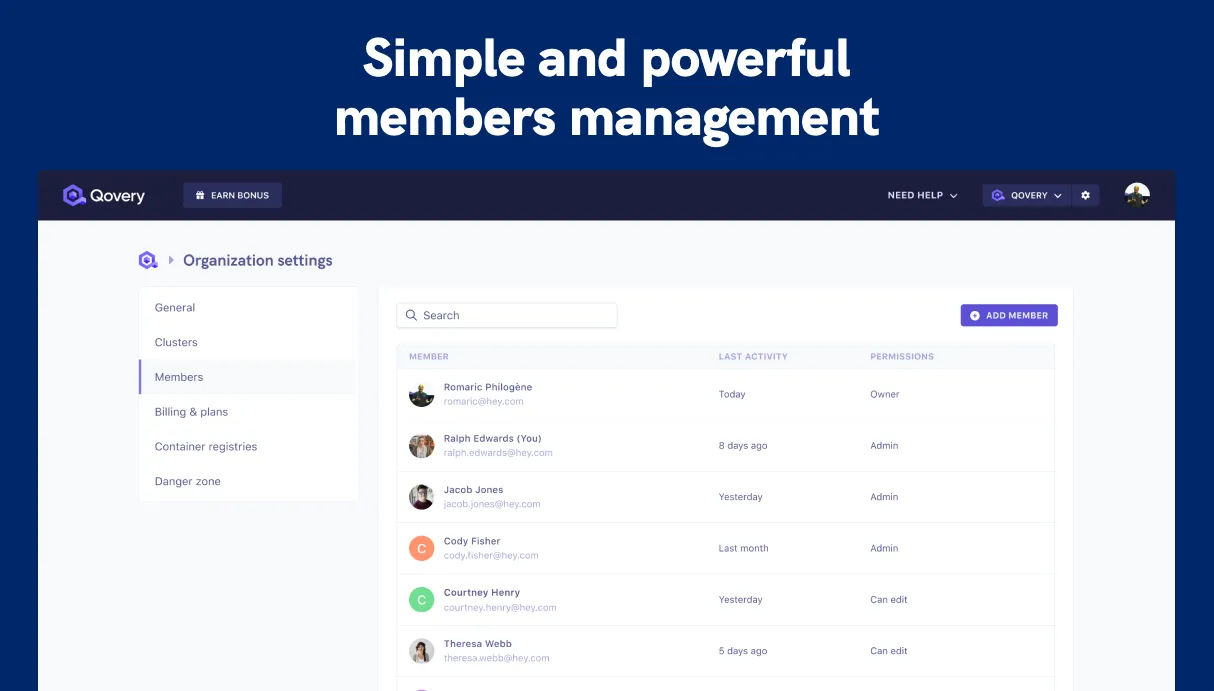 If you are familiar with IAM and other complex permissions systems, Qovery turns permissions management a breeze. 4 roles exist - Owner, Admin, Developer, and Viewer. Please take a look at our members' management documentation for more details.