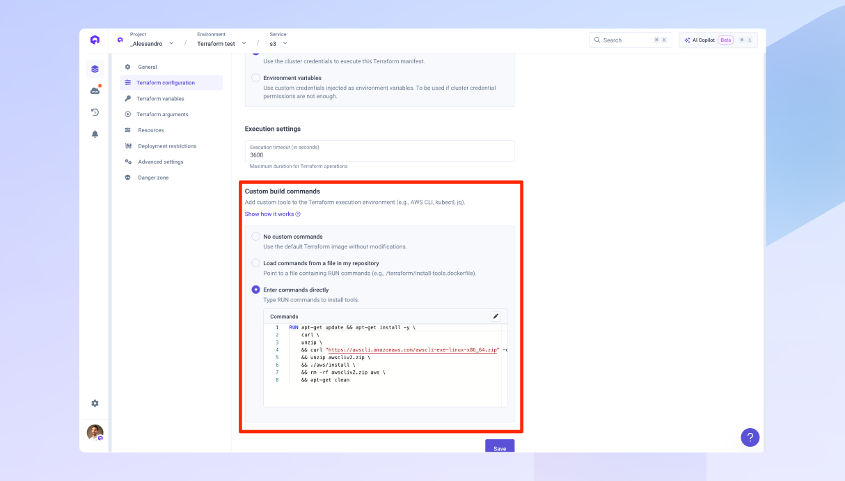 You can now customize the Docker image used to run your Terraform or OpenTofu manifests. This lets you install additional libraries, download tools, or run custom commands before execution.