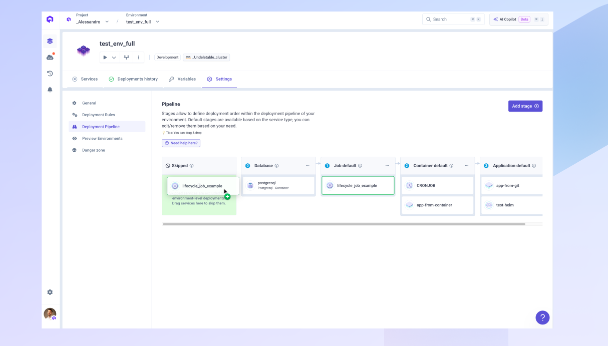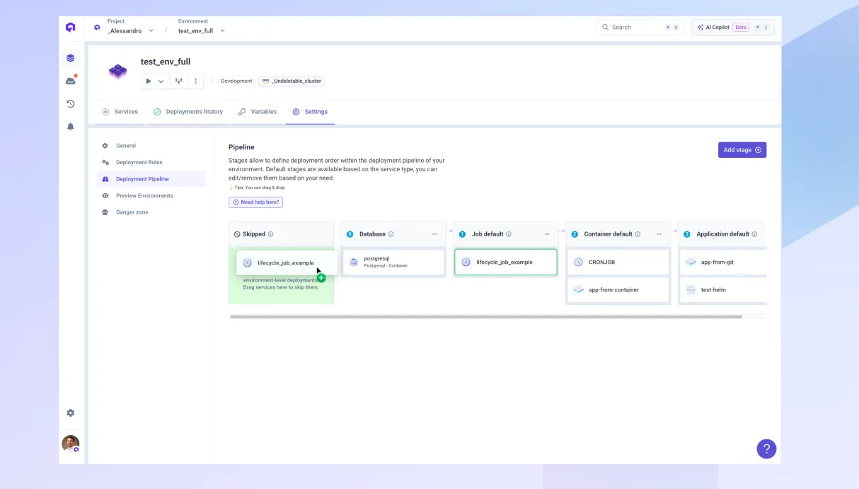 This is particularly useful when certain services or jobs should run only on demand instead of being automatically deployed every time the environment is deployed or cloned.