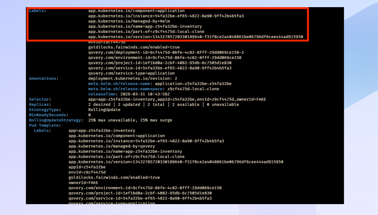 Resources deployed via Qovery now automatically include standard Kubernetes labels such as app.kubernetes.io/name.